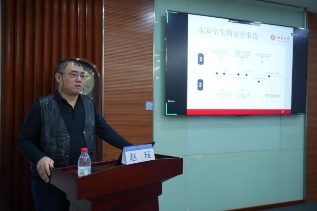 专题报告环节中,邀请北京大学生命科学学院高级工程师赵珏博士担任主讲。赵博士结合历史案例、自身管理经验与扎实的科研背景,阐述了科研场景下,生物安全的重要性、生物安全防护与管理知识,强调“人人都是安全第一责任人”的核心理念。